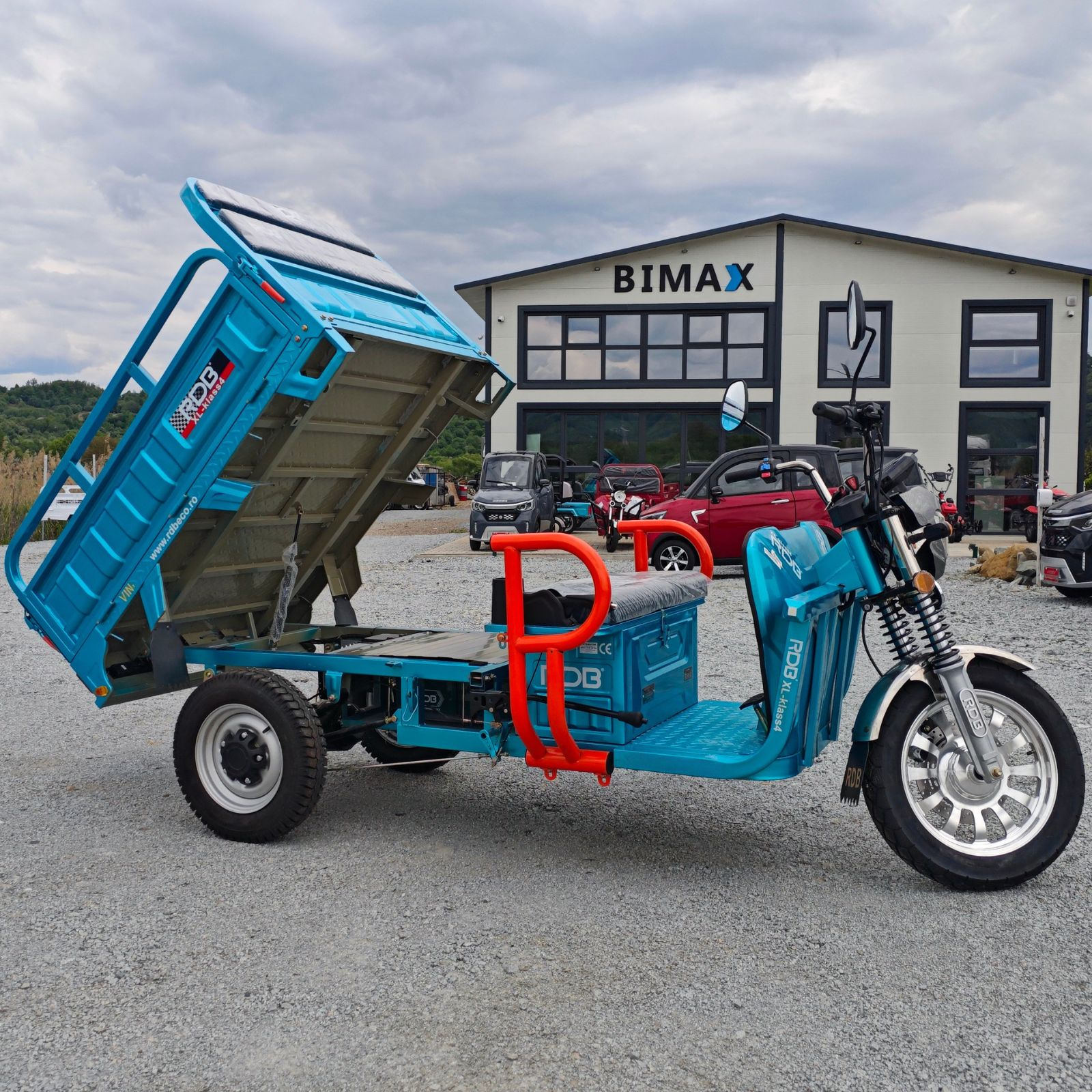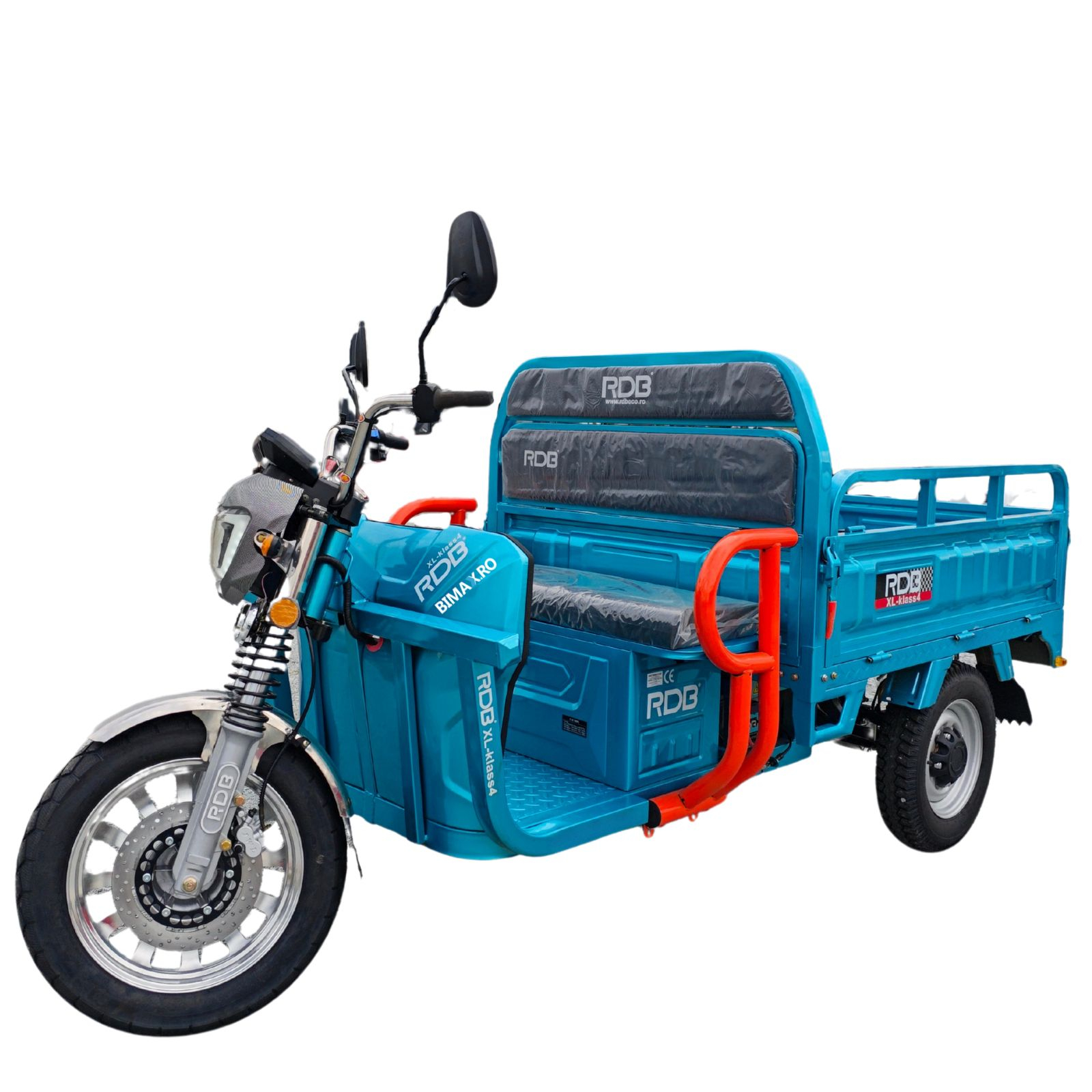 Tricicleta electrică cu remorcuță RDB XL Klass4, viteză maximă 25km/h, Motor de 4000W cu reductor (treaptă de forță), autonomie aprox. 40-50km, Basculare Hidraulică la Buton!